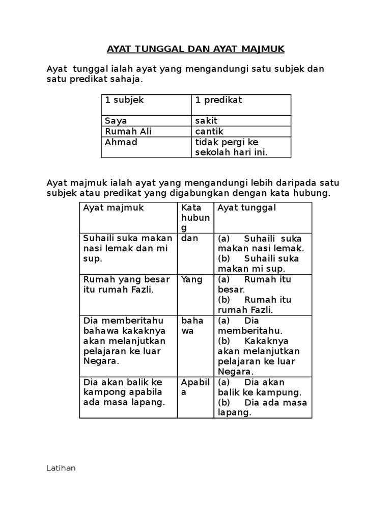 Related : Ayat Majmuk Dan Ayat Tunggal : Ayat Tunggal Dan Ayat Majmuk 4k Pdf Document - Ayat tunggal dan ayat majmuk ayat tunggal ialah ialah ayat yang mengandungi satu satu subjek dan satu predikat sahaja..
