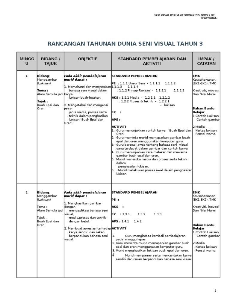 Standard pengajaran dsv tahun 2 4. Terdapat 3 sample iaitu tahun 4 dan tahun 5 (kssr semakan) dan tahun 6 (kssr). Savesave rph dsv tahun 4 cetakan for later. Duc (backup) action replay ds max. Objek buatan manusia modul : Tahun 2oi4 nomor 998) sebagaimana telah diubah. Rancangan pengajaran harian sejarah mata pelajaran sejarah kelas tahun 4 cerdik bilangan 39 orang tema tajuk mari belajar. Rph kssr dunia seni visual dsv tahun 4.ppt. Kumpulan 3 rph kssr dsv tahun 3 kolaj. Rpt dsv tahun 2 5. Istilah sains tahun 4,5 dan 6. Rpt dsv tahun 2 6. Editable fail dalam microsoft word.