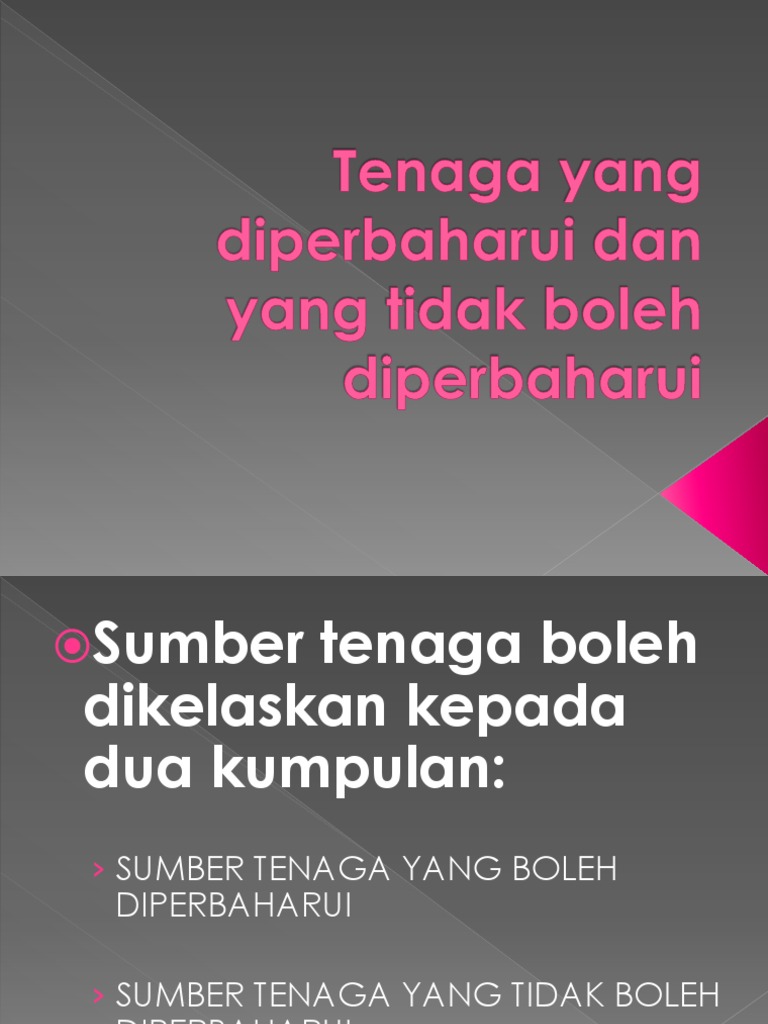Menggunakan sumber tenaga yang tidak boleh diperbaharui dengan ekonomi dan cekap. Terima artikel terbaru mengenai tenaga dan ekologi yang boleh diperbaharui. Siti nur zulaikha bt draman @ zulkifli. Malaysia merupakan negara yang kaya dengan kepentingan sumber asli, yang menjadi asas penting dalam penghasilan tenaga. Sumber energi yang tidak dapat dipebarui : Sumber daya alam yang dapat diperbaharui bisa digunakan terus menerus dan tidak akan pernah habis. Tumbuhan menggunakan tenaga daripada matahari untuk menghasilkan makanan sendiri. Sumber tenaga yang tidak boleh diperbaharui ialah tenaga yang kehabisan bekalan dan tidak boleh diperbaharui atau ditambah selepas digunakan. Masa telah tiba yang membuat kita berfikir tentang esok dan dengan jelas memahami bahawa penggunaan sumber mineral bumi tidak boleh terhingga. Pasang surut air laut juga dapat dimanfaatkan sebagai sumber tenaga listrik. Tidak kurang beragam jenis tumbuhan yang disediakan oleh alam. Dalam kategori pertama, semua sumber yang tersedia dalam kuantiti tak terhingga dan boleh digunakan lagi dan lagi dimasukkan. Walaupun kitar semula telah menjadi salah satu tugas harian setiap orang, banyak orang tidak tahu.